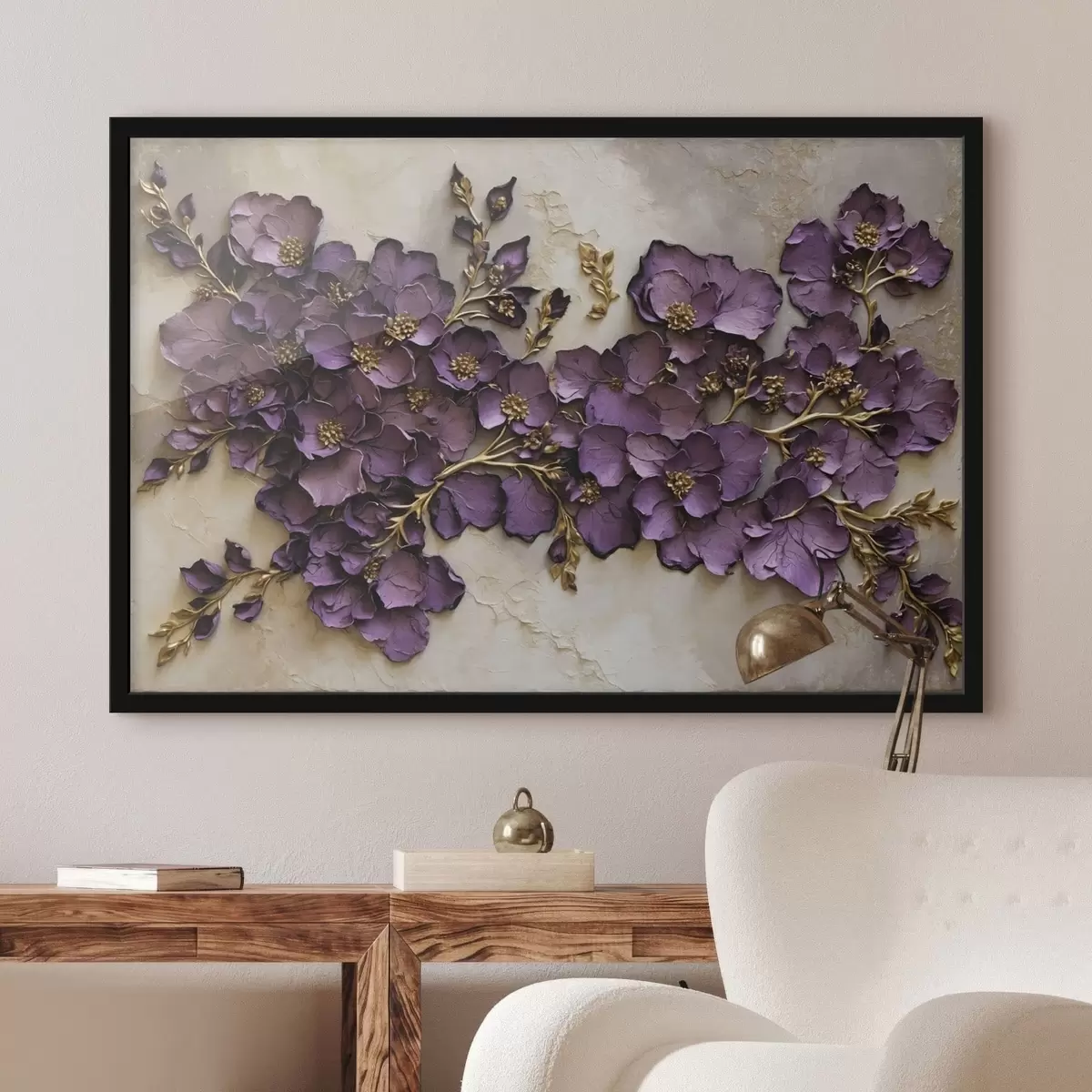 Poster Arrangement aus violetten Blumen mit Akzenten f47277