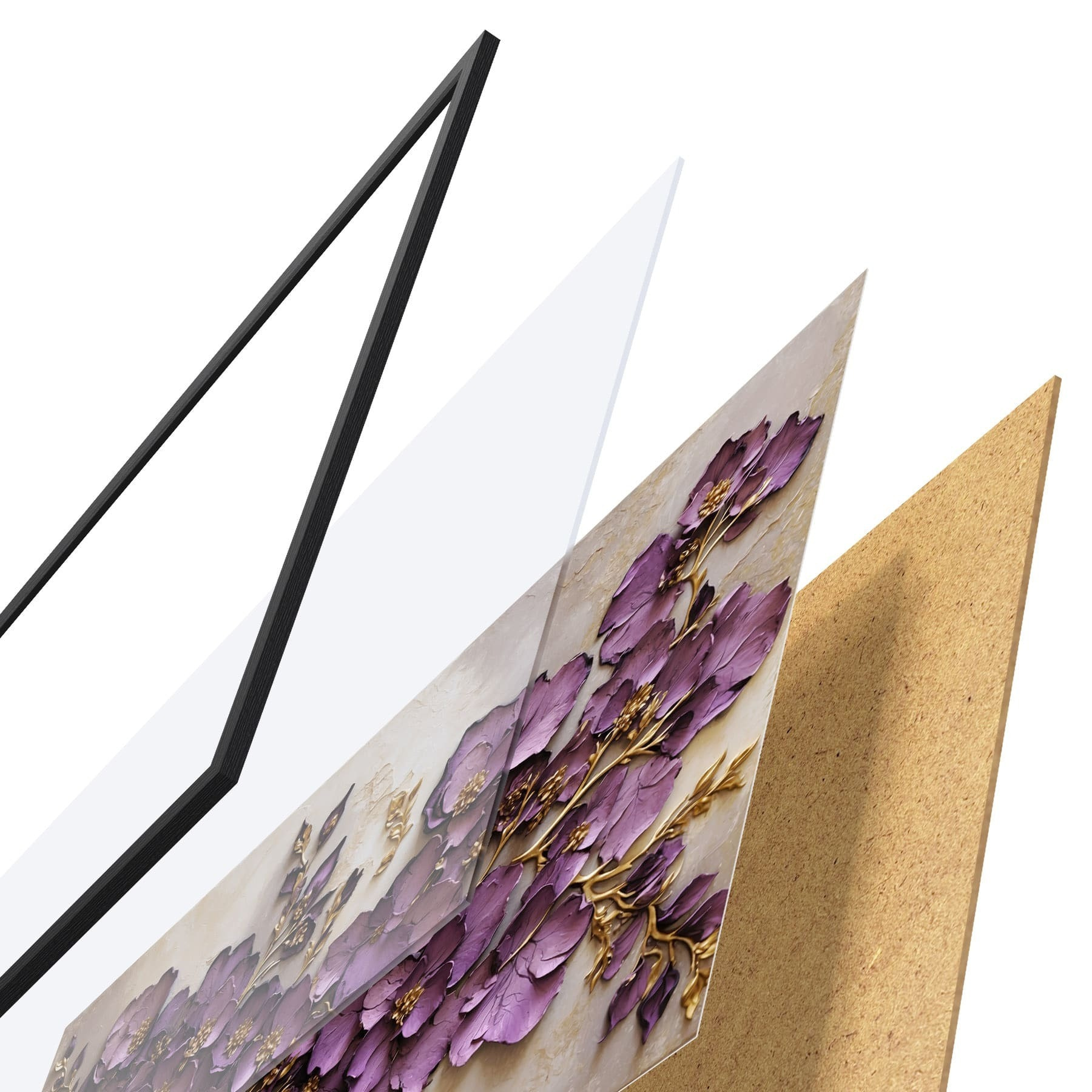 Das Poster besteht aus einem Rahmen, Plexiglas, einem gedruckten Bild und einer Rückwand aus Spanplatten. Dank der Halterungen auf der Rückseite kann das Poster sofort an die Wand gehängt werden.
