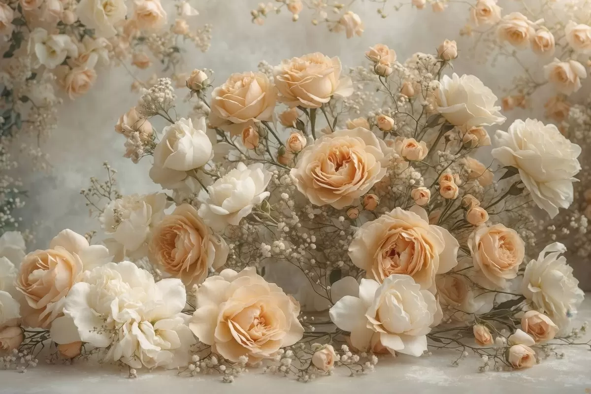 Poster Zarte cremefarbene Rosen in einem großen Arrangement Nr f47279