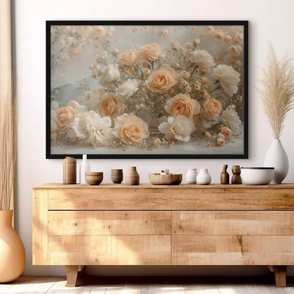 Poster Zarte cremefarbene Rosen in einem großen Arrangement f47279