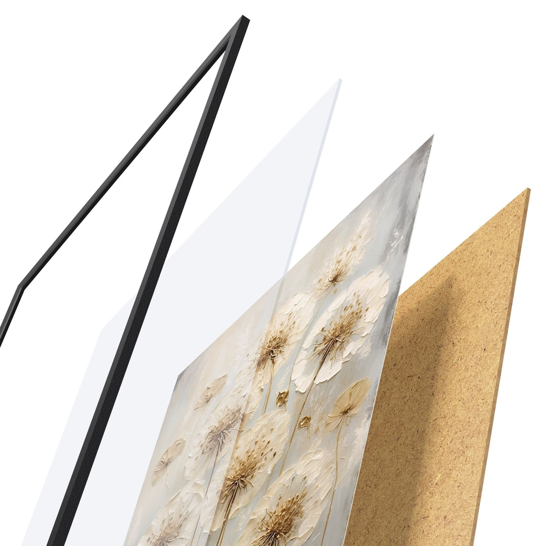 Das Poster besteht aus einem Rahmen, Plexiglas, einem gedruckten Bild und einer Rückwand aus Spanplatten. Dank der Halterungen auf der Rückseite kann das Poster sofort an die Wand gehängt werden.