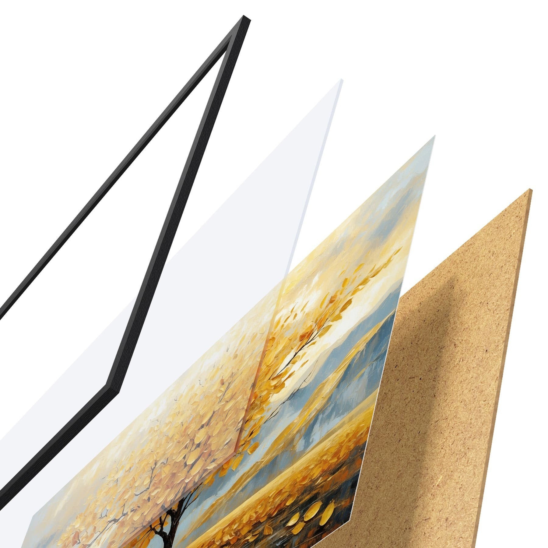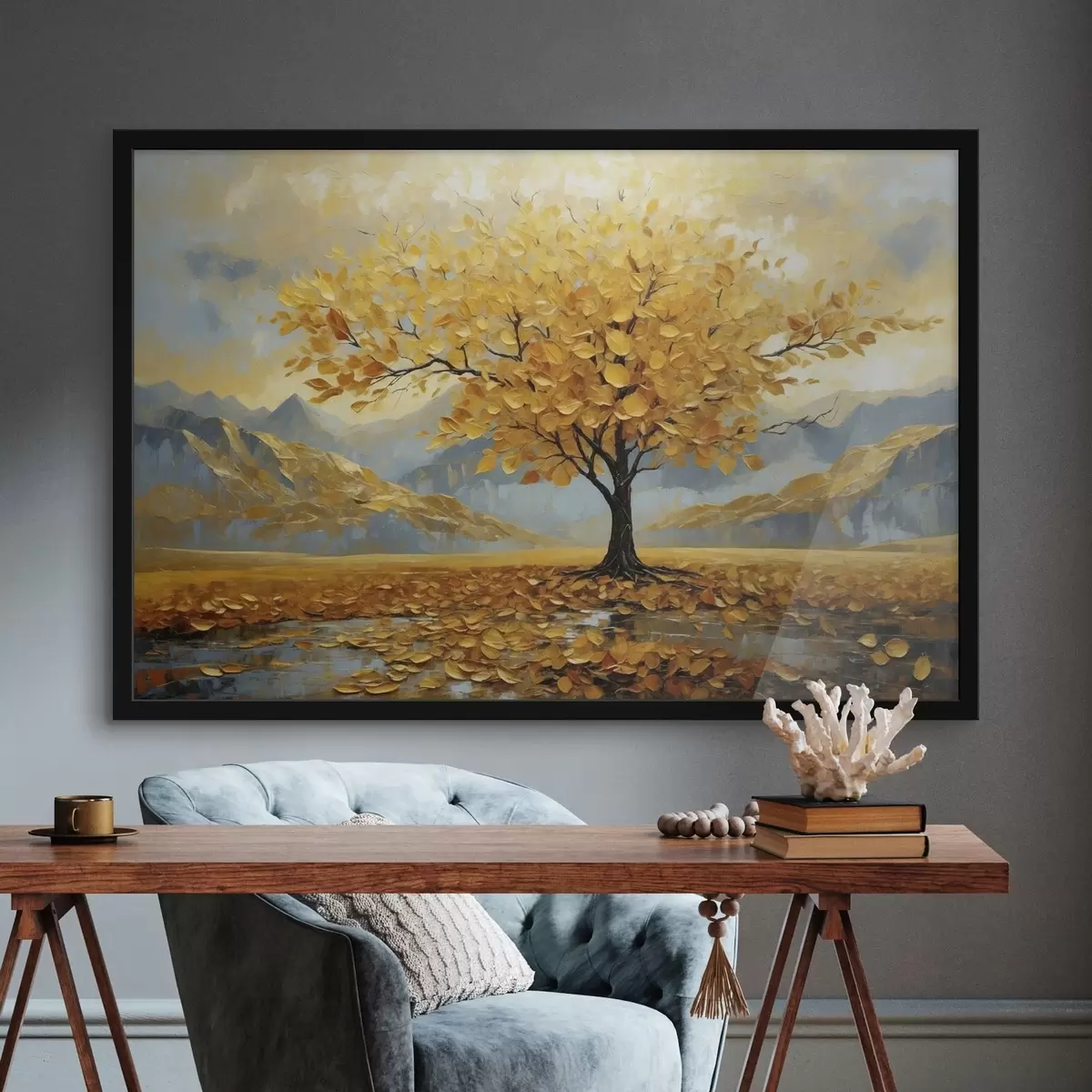 Poster Baum mit gelben Blättern in einer Berglandschaft Nr f47285