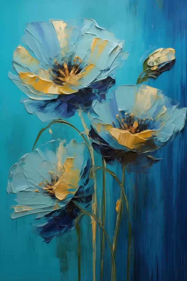 Poster Blaue Blumen auf einem lebhaften Hintergrund Nr f47324