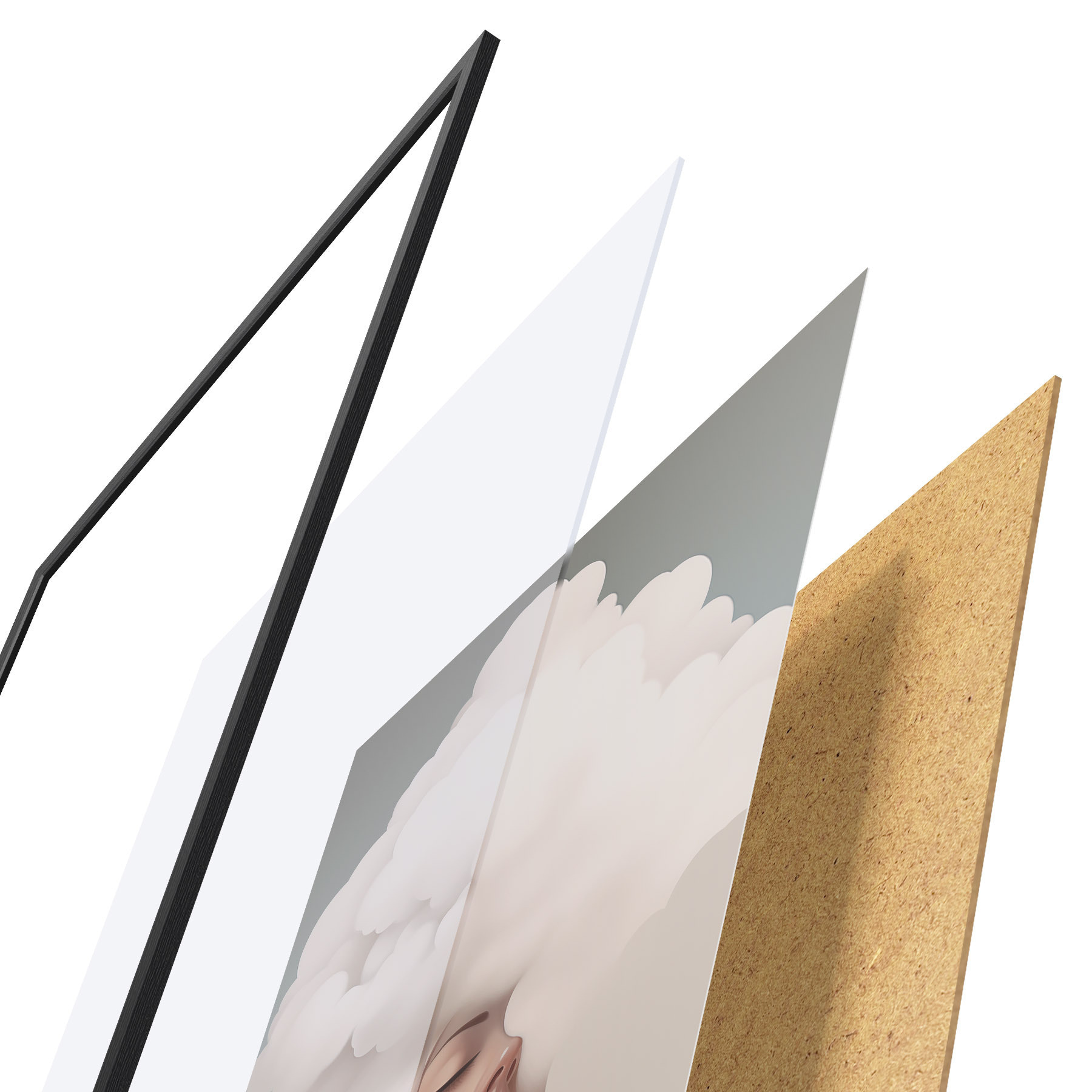Das Poster besteht aus einem Rahmen, Plexiglas, einem gedruckten Bild und einer Rückwand aus Spanplatten. Dank der Halterungen auf der Rückseite kann das Poster sofort an die Wand gehängt werden.