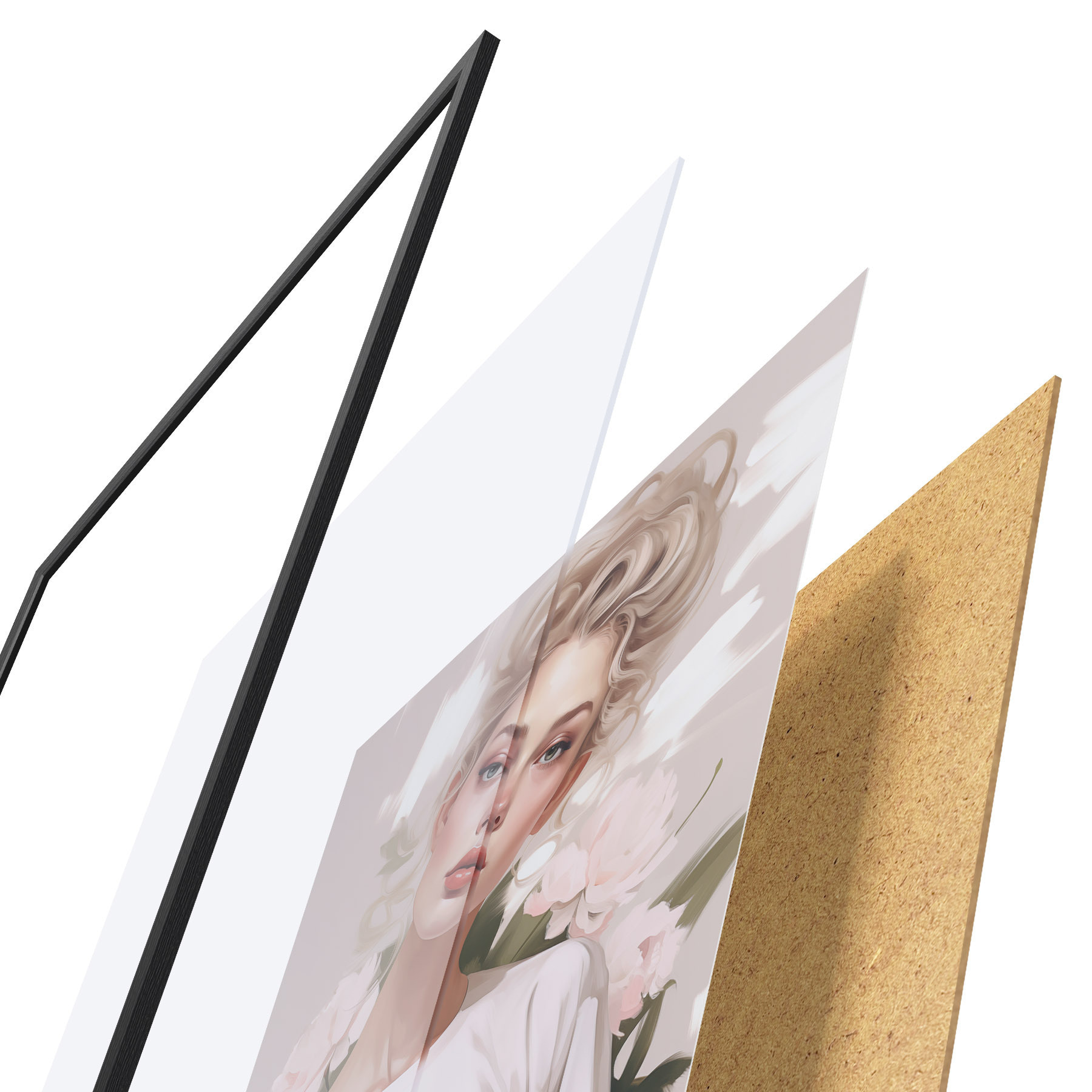 Das Poster besteht aus einem Rahmen, Plexiglas, einem gedruckten Bild und einer Rückwand aus Spanplatten. Dank der Halterungen auf der Rückseite kann das Poster sofort an die Wand gehängt werden.