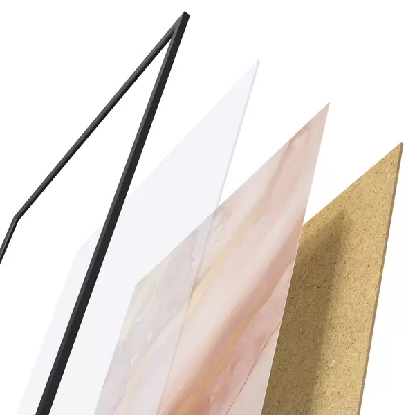Das Poster besteht aus einem Rahmen, Plexiglas, einem gedruckten Bild und einer Rückwand aus Spanplatten. Dank der Halterungen auf der Rückseite kann das Poster sofort an die Wand gehängt werden.