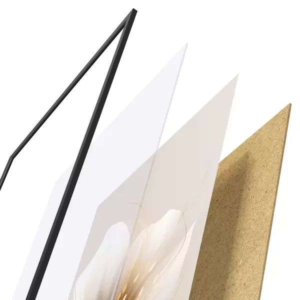 Das Poster besteht aus einem Rahmen, Plexiglas, einem gedruckten Bild und einer Rückwand aus Spanplatten. Dank der Halterungen auf der Rückseite kann das Poster sofort an die Wand gehängt werden.