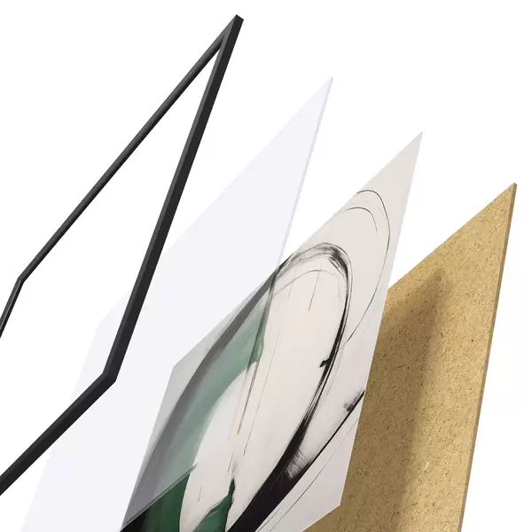 Das Poster besteht aus einem Rahmen, Plexiglas, einem gedruckten Bild und einer Rückwand aus Spanplatten. Dank der Halterungen auf der Rückseite kann das Poster sofort an die Wand gehängt werden.