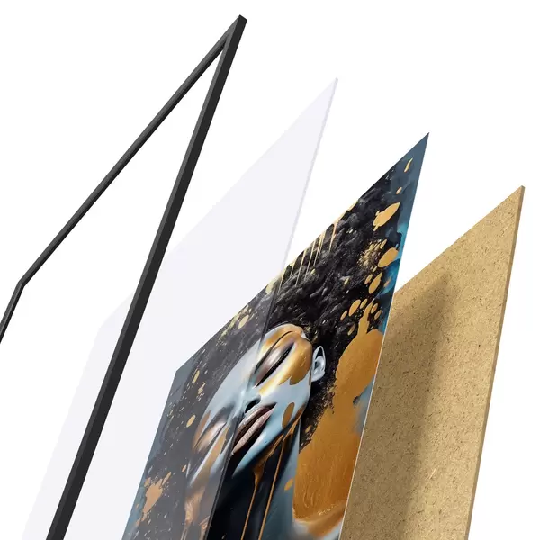 Das Poster besteht aus einem Rahmen, Plexiglas, einem gedruckten Bild und einer Rückwand aus Spanplatten. Dank der Halterungen auf der Rückseite kann das Poster sofort an die Wand gehängt werden.