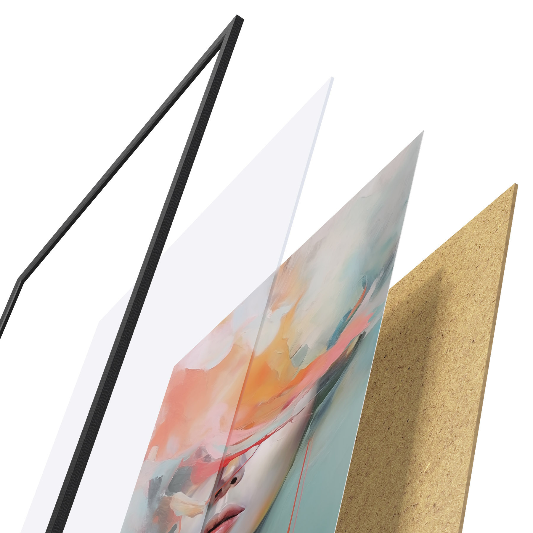 Das Poster besteht aus einem Rahmen, Plexiglas, einem gedruckten Bild und einer Rückwand aus Spanplatten. Dank der Halterungen auf der Rückseite kann das Poster sofort an die Wand gehängt werden.