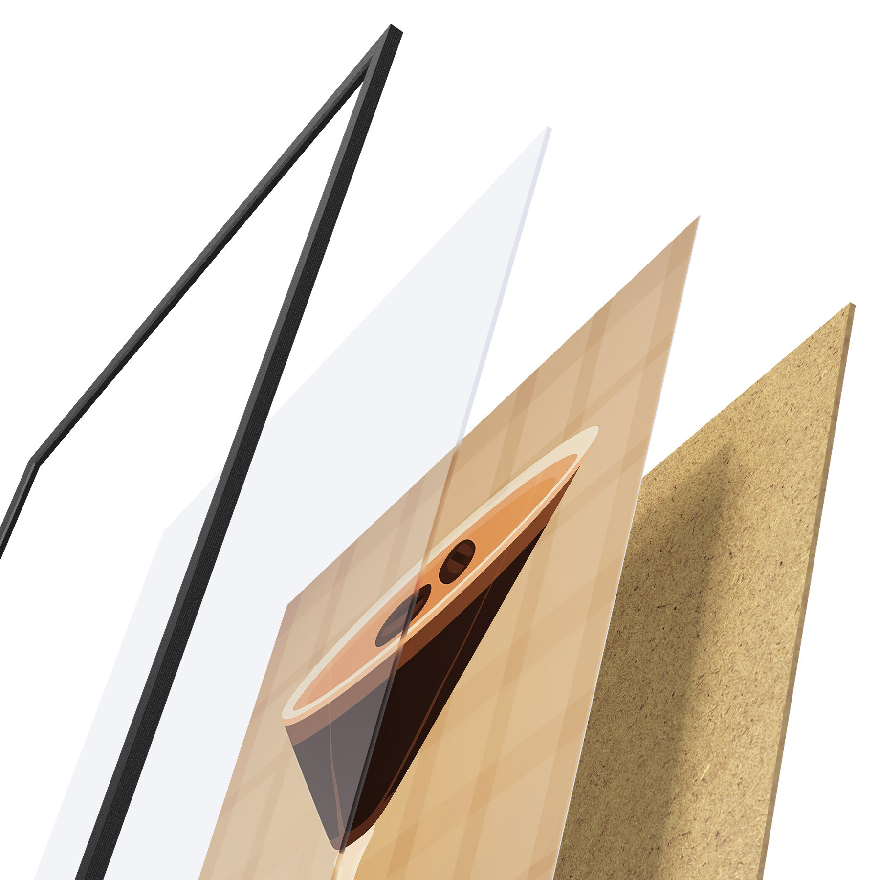 Das Poster besteht aus einem Rahmen, Plexiglas, einem gedruckten Bild und einer Rückwand aus Spanplatten. Dank der Halterungen auf der Rückseite kann das Poster sofort an die Wand gehängt werden.