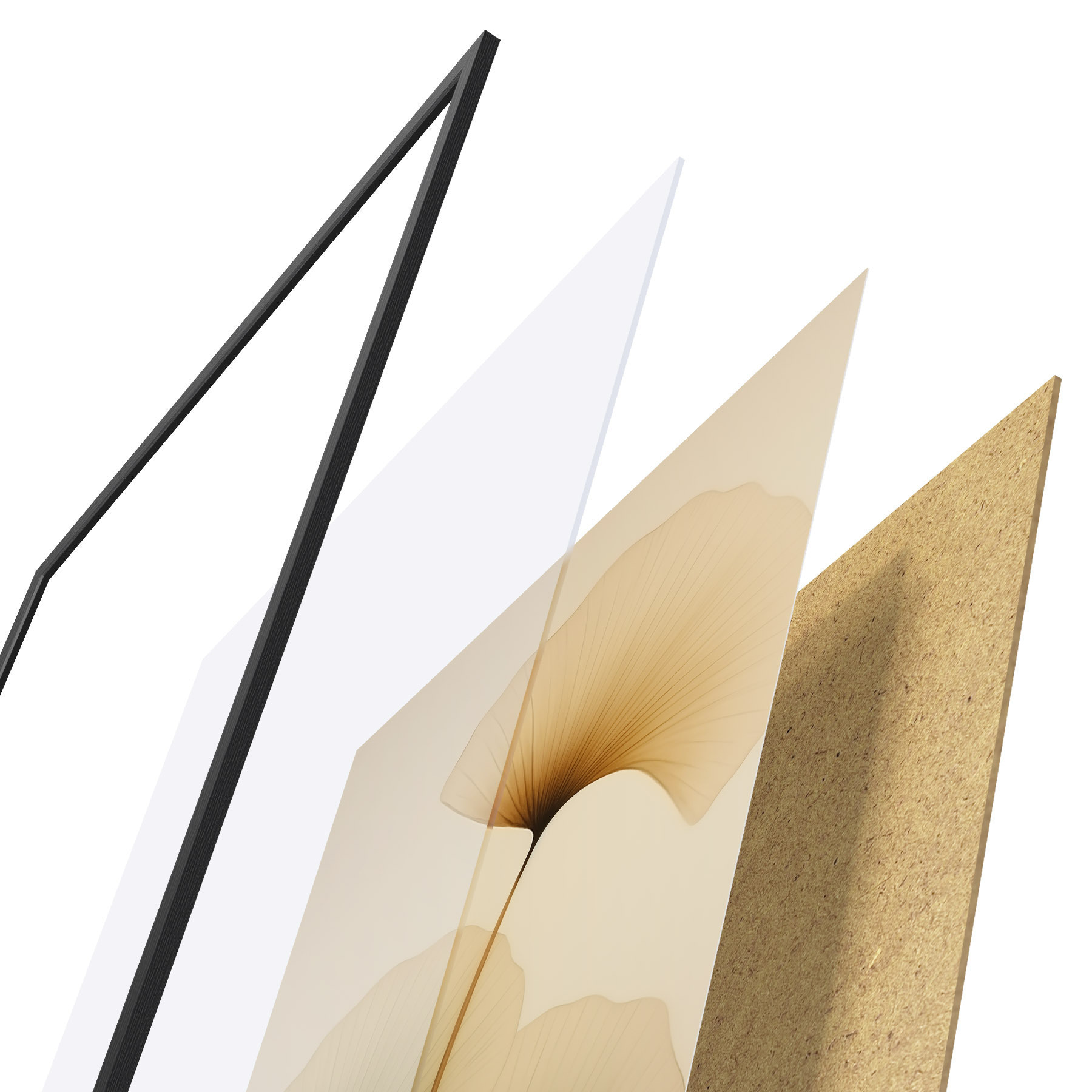 Das Poster besteht aus einem Rahmen, Plexiglas, einem gedruckten Bild und einer Rückwand aus Spanplatten. Dank der Halterungen auf der Rückseite kann das Poster sofort an die Wand gehängt werden.