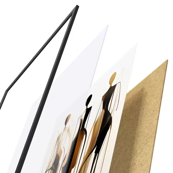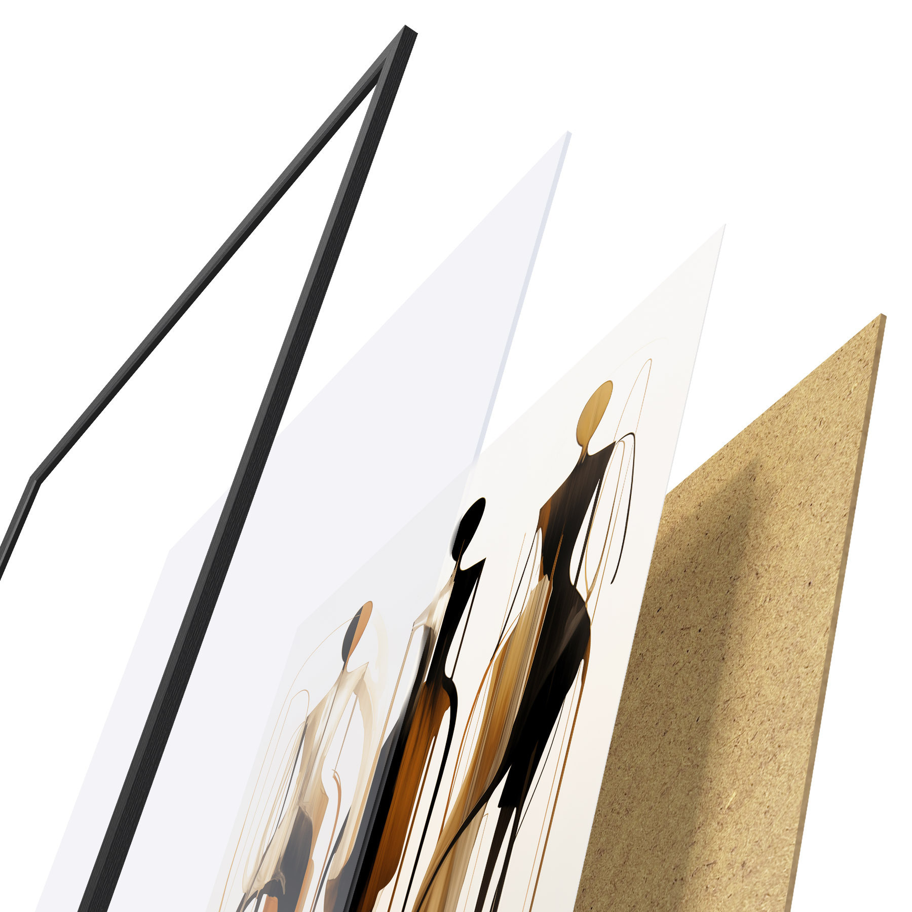 Das Poster besteht aus einem Rahmen, Plexiglas, einem gedruckten Bild und einer Rückwand aus Spanplatten. Dank der Halterungen auf der Rückseite kann das Poster sofort an die Wand gehängt werden.