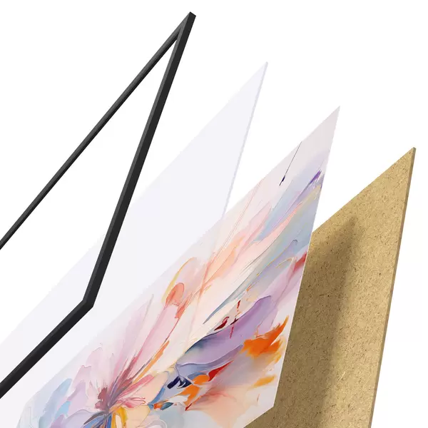 Das Poster besteht aus einem Rahmen, Plexiglas, einem gedruckten Bild und einer Rückwand aus Spanplatten. Dank der Halterungen auf der Rückseite kann das Poster sofort an die Wand gehängt werden.