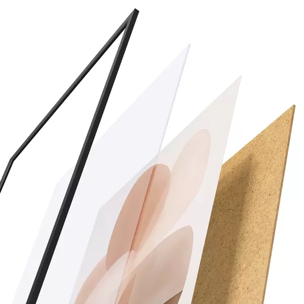 Das Poster besteht aus einem Rahmen, Plexiglas, einem gedruckten Bild und einer Rückwand aus Spanplatten. Dank der Halterungen auf der Rückseite kann das Poster sofort an die Wand gehängt werden.