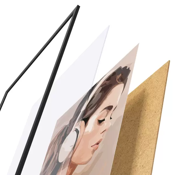 Das Poster besteht aus einem Rahmen, Plexiglas, einem gedruckten Bild und einer Rückwand aus Spanplatten. Dank der Halterungen auf der Rückseite kann das Poster sofort an die Wand gehängt werden.