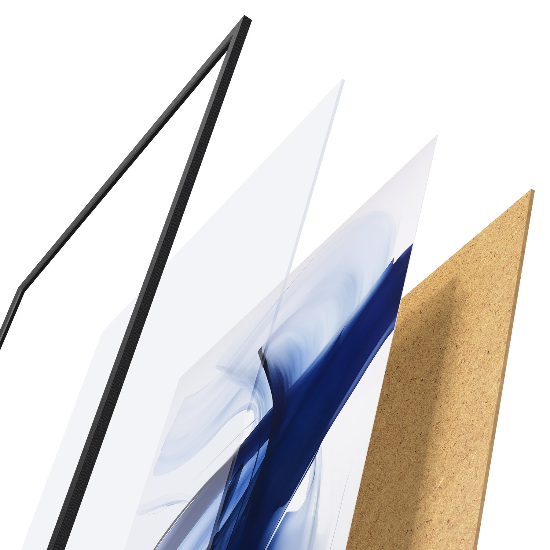 Das Poster besteht aus einem Rahmen, Plexiglas, einem gedruckten Bild und einer Rückwand aus Spanplatten. Dank der Halterungen auf der Rückseite kann das Poster sofort an die Wand gehängt werden.