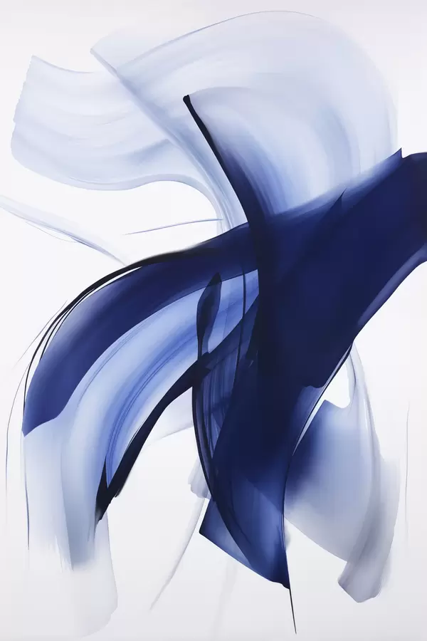 Poster Abstrakte blaue, pinselstrichartige Formen mit fließenden Linien und Kurven vor weißem Hintergrund, moderne Kunst Nr f47429