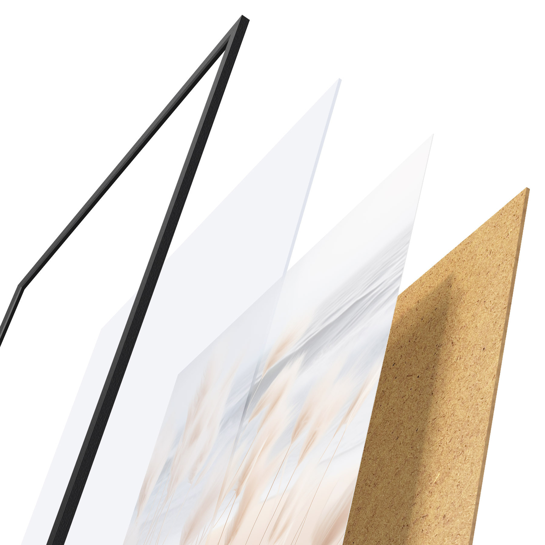 Das Poster besteht aus einem Rahmen, Plexiglas, einem gedruckten Bild und einer Rückwand aus Spanplatten. Dank der Halterungen auf der Rückseite kann das Poster sofort an die Wand gehängt werden.