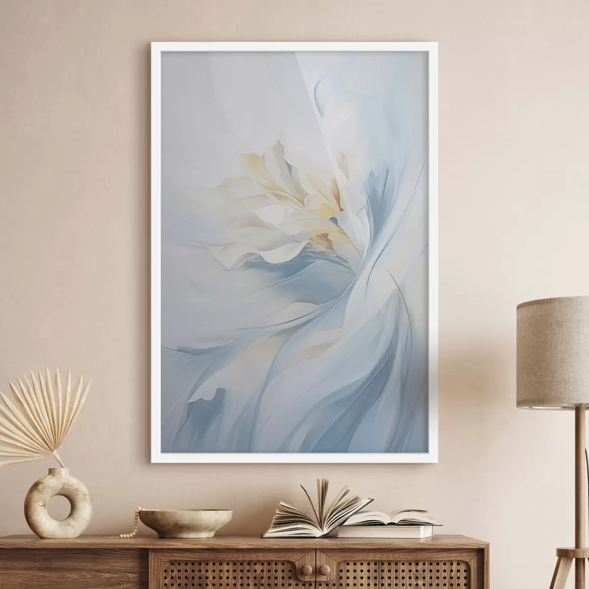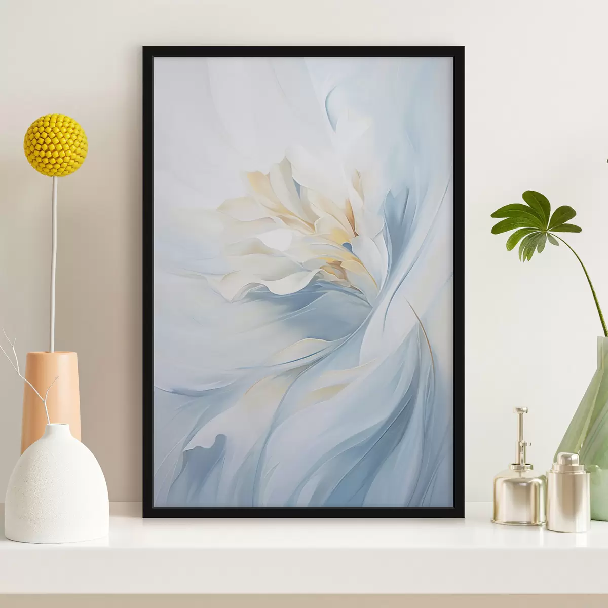 Poster Abstrakte, zarte, durchscheinende Blütenblätter, die sich bei sanfter Beleuchtung und einer malerischen Textur nach innen drehen. f47436