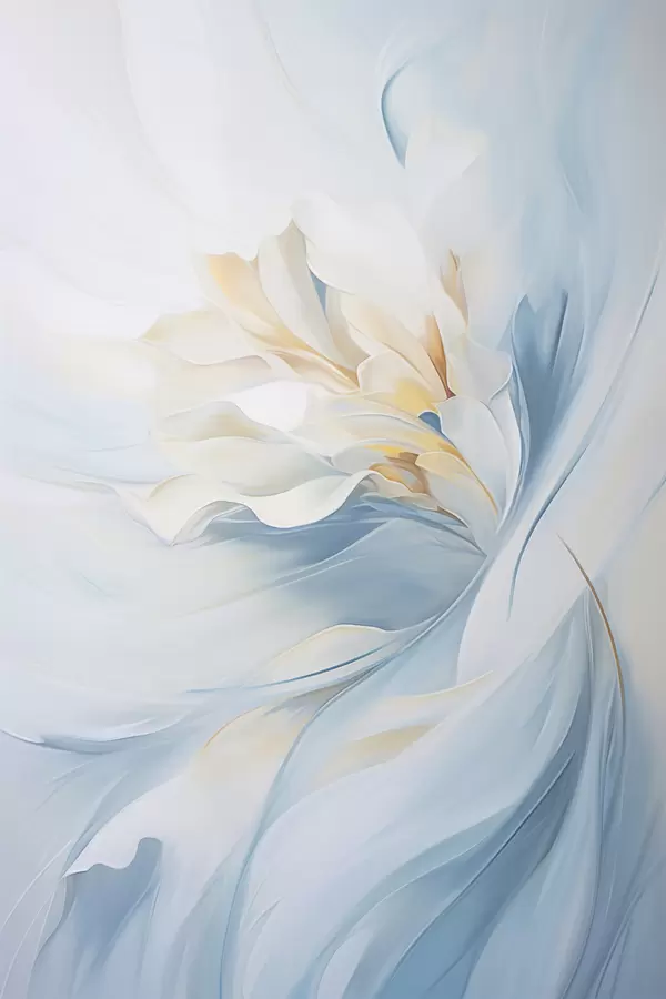Poster Abstrakte, zarte, durchscheinende Blütenblätter, die sich bei sanfter Beleuchtung und einer malerischen Textur nach innen drehen. Nr f47436