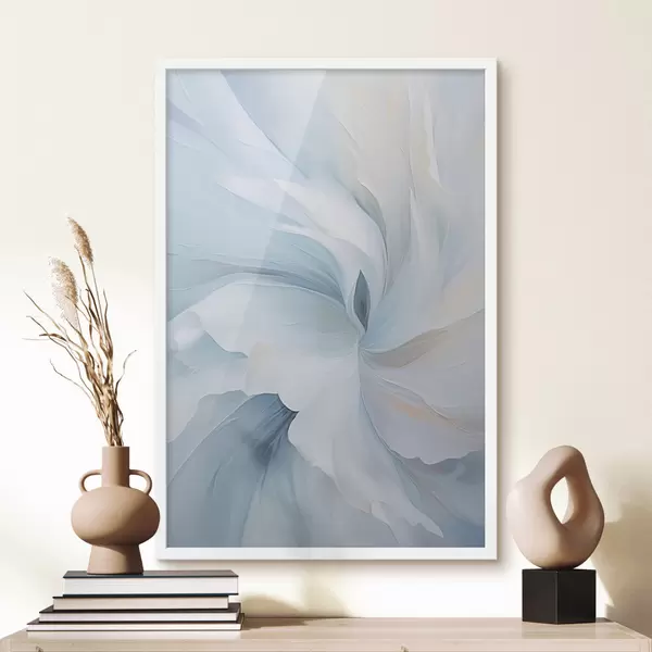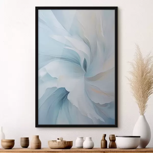 Poster Abstrakte, zarte, durchscheinende Blütenblätter, die sich bei sanfter Beleuchtung und einer malerischen Textur nach innen drehen. f47437