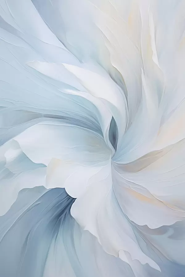 Poster Abstrakte, zarte, durchscheinende Blütenblätter, die sich bei sanfter Beleuchtung und einer malerischen Textur nach innen drehen. Nr f47437