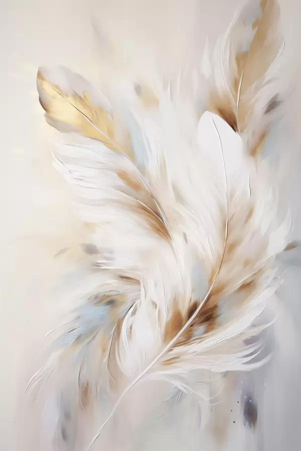 Poster Große, weiche Federn in einer Mischung aus Weiß-, Gelb- und Brauntönen vor einem hellen, abstrakten Hintergrund Nr f47442