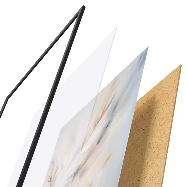 Das Poster besteht aus einem Rahmen, Plexiglas, einem gedruckten Bild und einer Rückwand aus Spanplatten. Dank der Halterungen auf der Rückseite kann das Poster sofort an die Wand gehängt werden.
