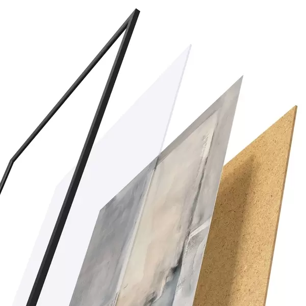 Das Poster besteht aus einem Rahmen, Plexiglas, einem gedruckten Bild und einer Rückwand aus Spanplatten. Dank der Halterungen auf der Rückseite kann das Poster sofort an die Wand gehängt werden.