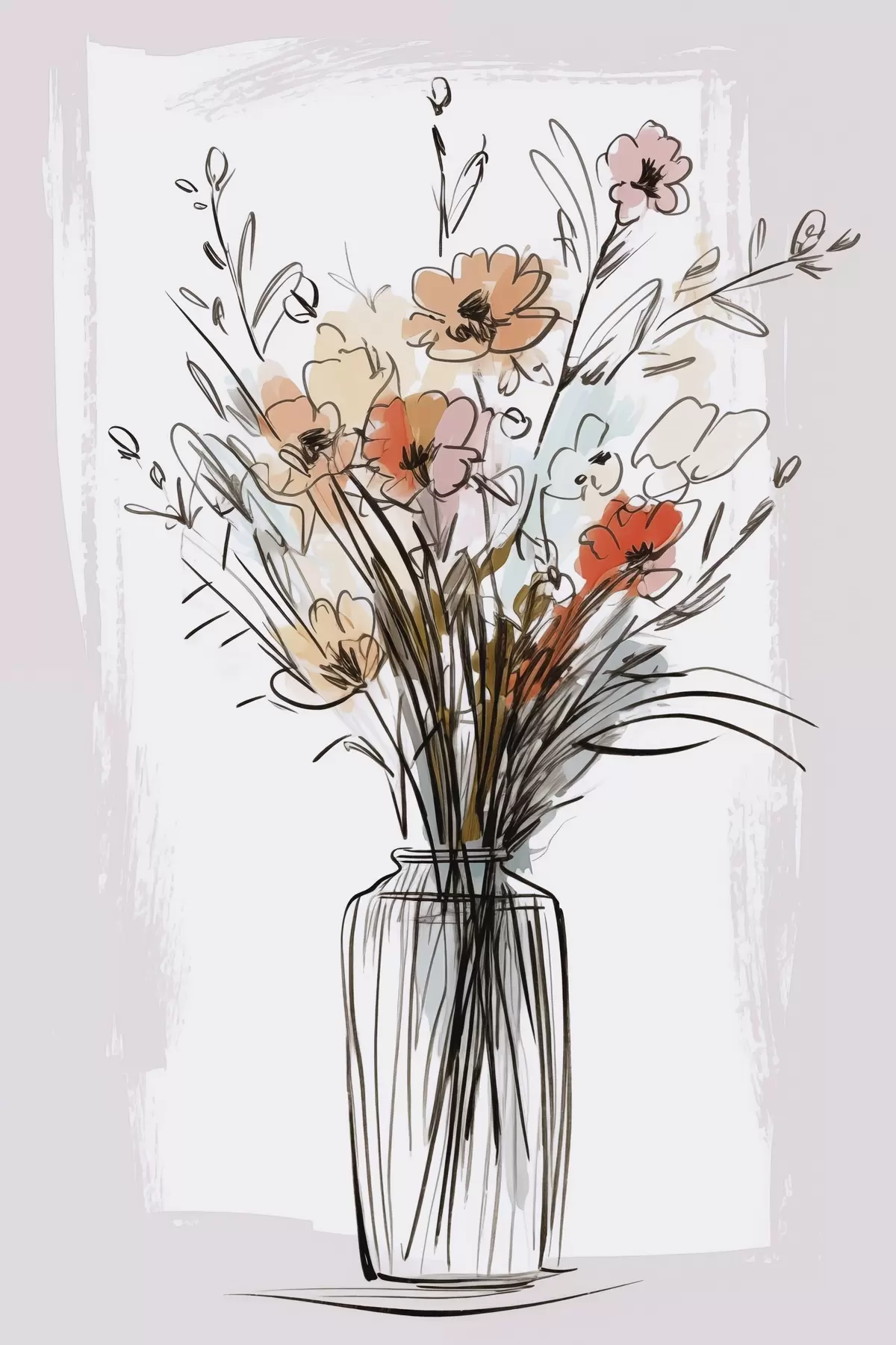 Poster Blumen in einer Vase, Nachahmung einer Zeichnung Nr f47495