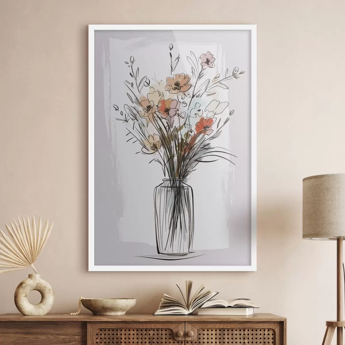 Poster Blumen in einer Vase, Nachahmung einer Zeichnung f47495