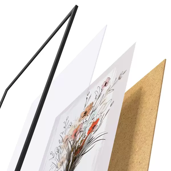 Das Poster besteht aus einem Rahmen, Plexiglas, einem gedruckten Bild und einer Rückwand aus Spanplatten. Dank der Halterungen auf der Rückseite kann das Poster sofort an die Wand gehängt werden.