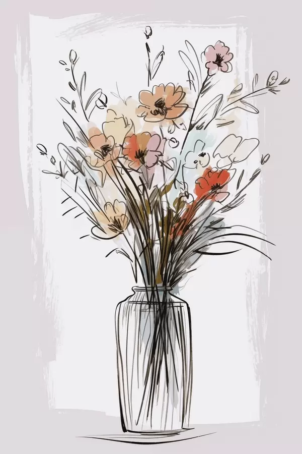 Poster Blumen in einer Vase, Nachahmung einer Zeichnung Nr f47495
