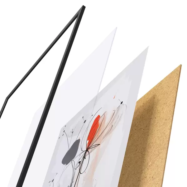 Das Poster besteht aus einem Rahmen, Plexiglas, einem gedruckten Bild und einer Rückwand aus Spanplatten. Dank der Halterungen auf der Rückseite kann das Poster sofort an die Wand gehängt werden.