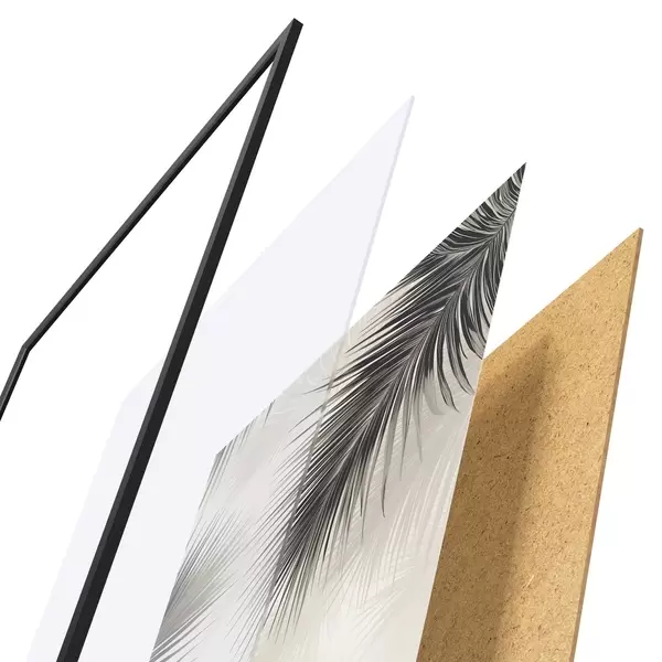 Das Poster besteht aus einem Rahmen, Plexiglas, einem gedruckten Bild und einer Rückwand aus Spanplatten. Dank der Halterungen auf der Rückseite kann das Poster sofort an die Wand gehängt werden.