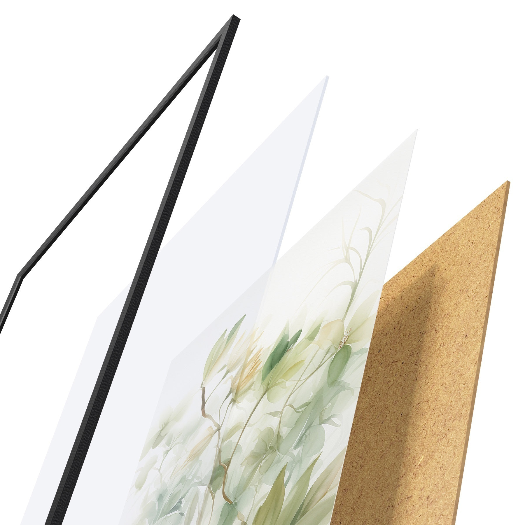 Das Poster besteht aus einem Rahmen, Plexiglas, einem gedruckten Bild und einer Rückwand aus Spanplatten. Dank der Halterungen auf der Rückseite kann das Poster sofort an die Wand gehängt werden.