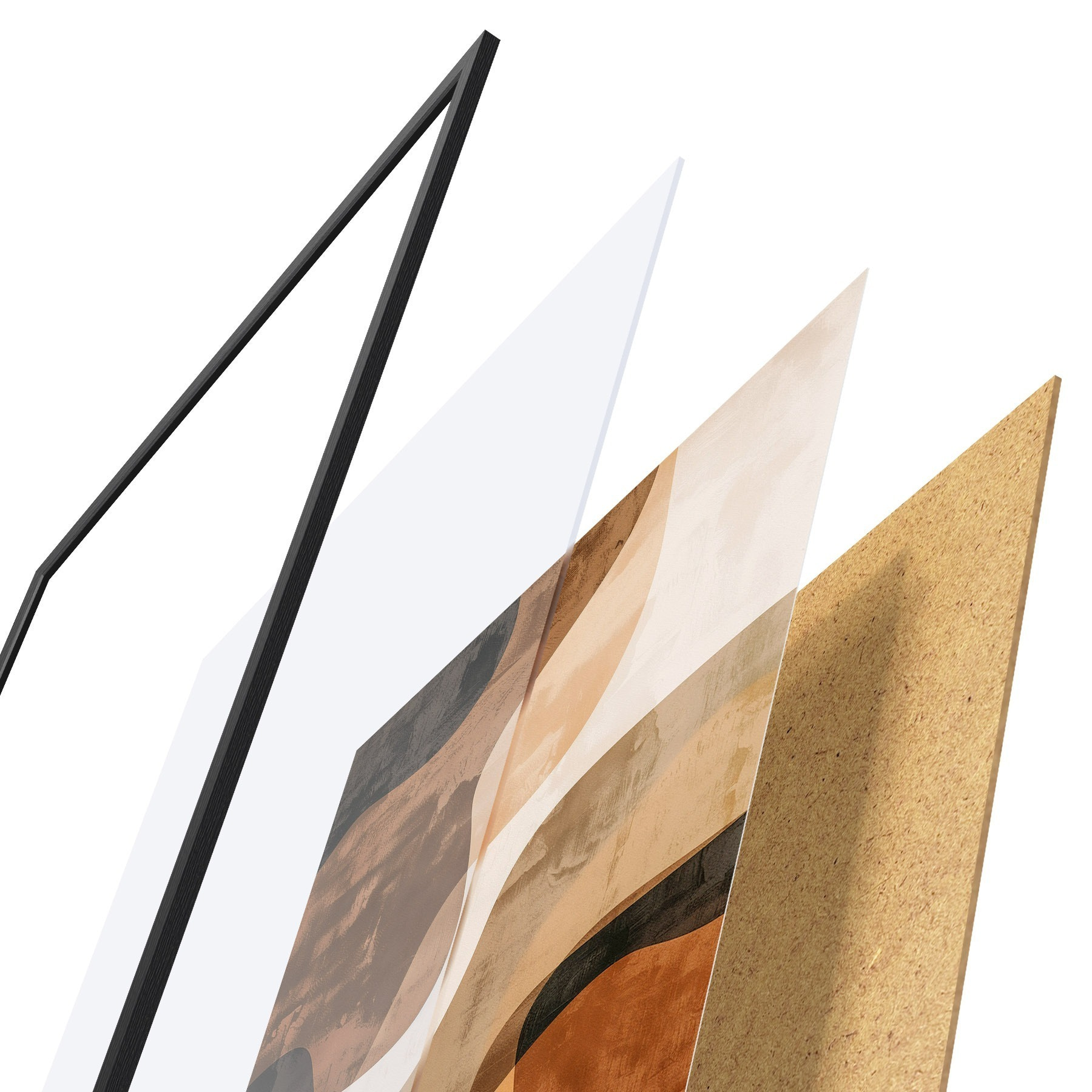 Das Poster besteht aus einem Rahmen, Plexiglas, einem gedruckten Bild und einer Rückwand aus Spanplatten. Dank der Halterungen auf der Rückseite kann das Poster sofort an die Wand gehängt werden.