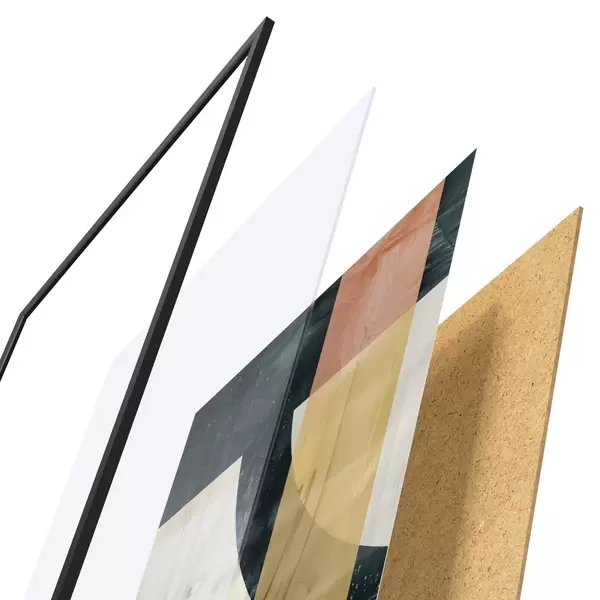 Das Poster besteht aus einem Rahmen, Plexiglas, einem gedruckten Bild und einer Rückwand aus Spanplatten. Dank der Halterungen auf der Rückseite kann das Poster sofort an die Wand gehängt werden.