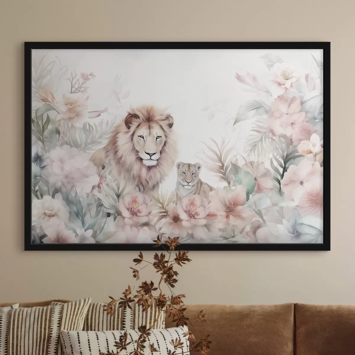 Poster Löwen im tropischen Dickicht, Aquarellimitation Nr f47640