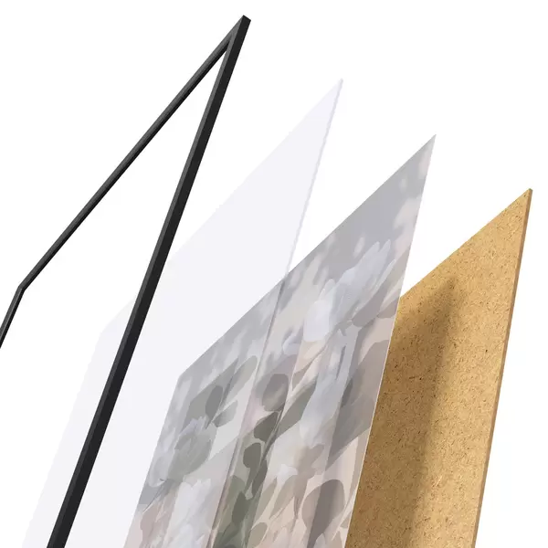Das Poster besteht aus einem Rahmen, Plexiglas, einem gedruckten Bild und einer Rückwand aus Spanplatten. Dank der Halterungen auf der Rückseite kann das Poster sofort an die Wand gehängt werden.