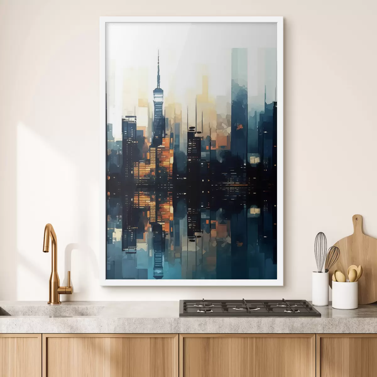 Poster Abendlicher Sonnenuntergang in einer Großstadt f47677