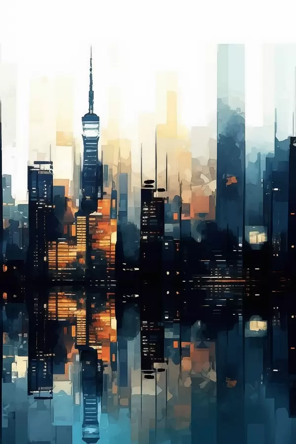 Poster Abendlicher Sonnenuntergang in einer Großstadt Nr f47677