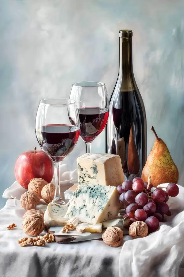 Poster Stillleben mit Wein, Käse und Nüssen Nr f47686