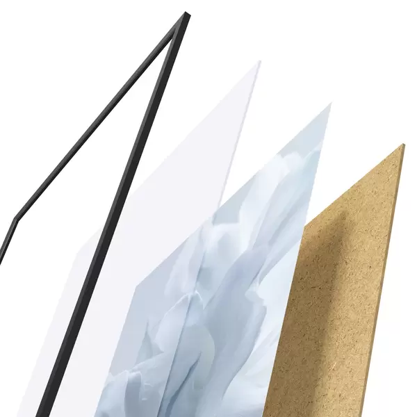 Das Poster besteht aus einem Rahmen, Plexiglas, einem gedruckten Bild und einer Rückwand aus Spanplatten. Dank der Halterungen auf der Rückseite kann das Poster sofort an die Wand gehängt werden.