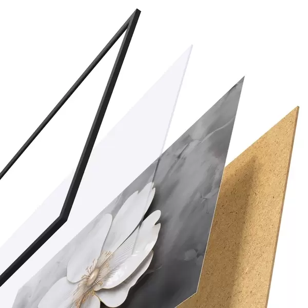 Das Poster besteht aus einem Rahmen, Plexiglas, einem gedruckten Bild und einer Rückwand aus Spanplatten. Dank der Halterungen auf der Rückseite kann das Poster sofort an die Wand gehängt werden.