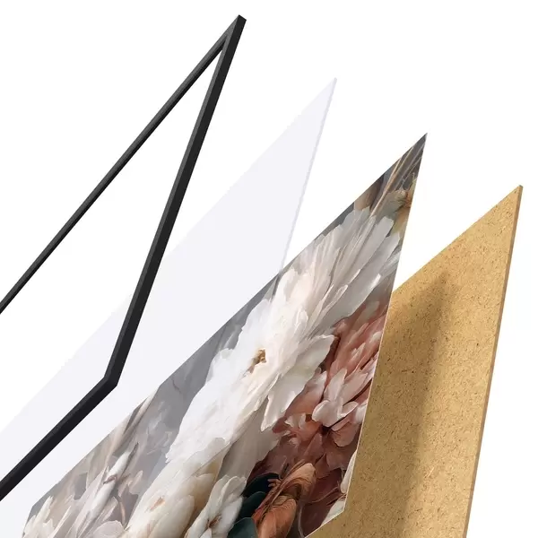 Das Poster besteht aus einem Rahmen, Plexiglas, einem gedruckten Bild und einer Rückwand aus Spanplatten. Dank der Halterungen auf der Rückseite kann das Poster sofort an die Wand gehängt werden.