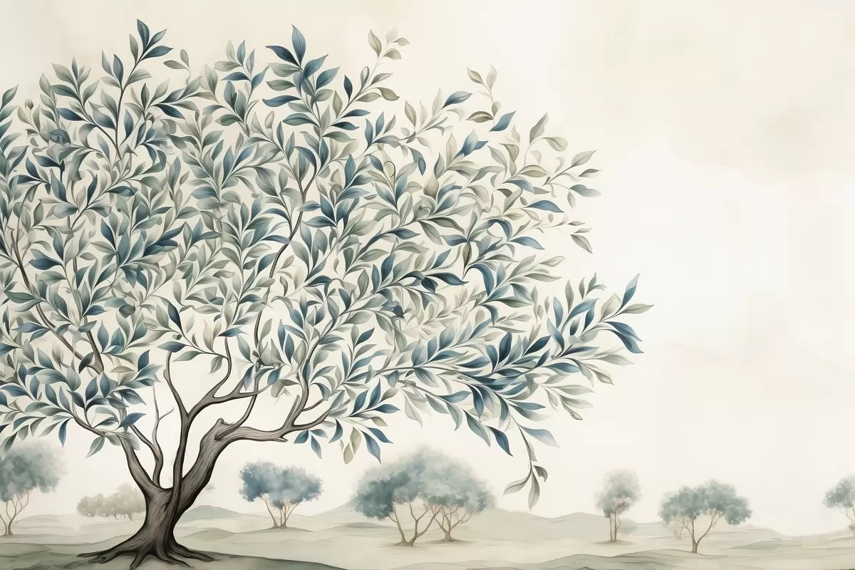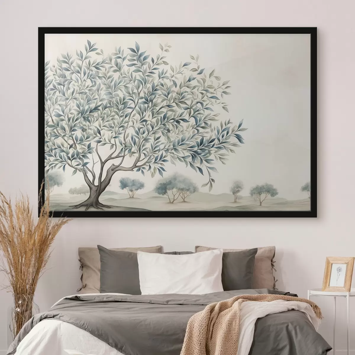 Poster Baum auf einem Feld, Aquarellgemälde Nr f47705