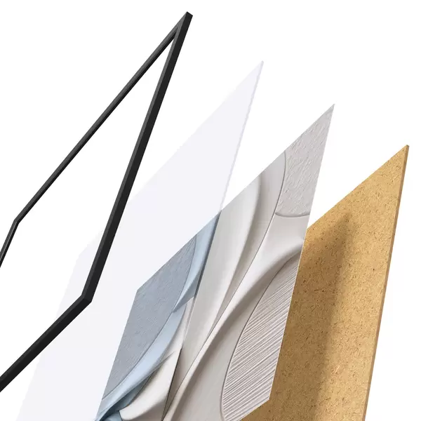 Das Poster besteht aus einem Rahmen, Plexiglas, einem gedruckten Bild und einer Rückwand aus Spanplatten. Dank der Halterungen auf der Rückseite kann das Poster sofort an die Wand gehängt werden.