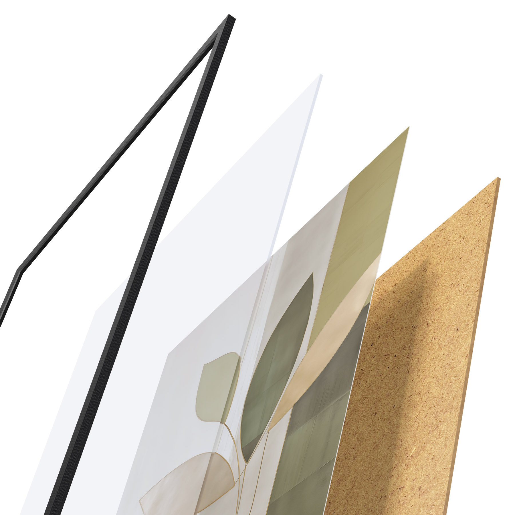 Das Poster besteht aus einem Rahmen, Plexiglas, einem gedruckten Bild und einer Rückwand aus Spanplatten. Dank der Halterungen auf der Rückseite kann das Poster sofort an die Wand gehängt werden.